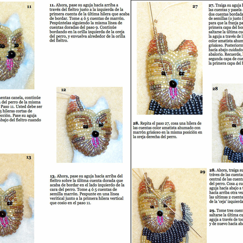 PDF en español: YORKIE patrón de bordado con cuentas de prendedor de perro + Tutorial de Introducción a Básico Bordados con Cuentas