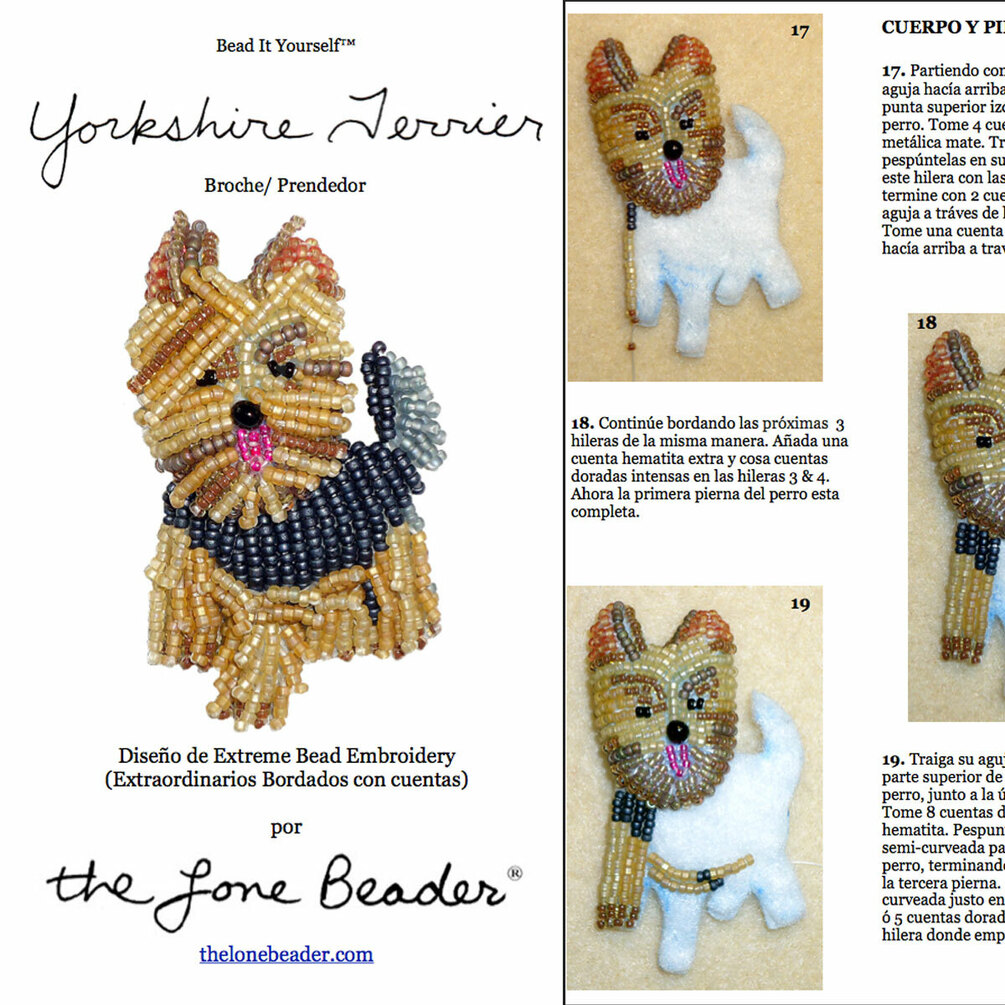PDF en español: YORKIE patrón de bordado con cuentas de prendedor de perro + Tutorial de Introducción a Básico Bordados con Cuentas