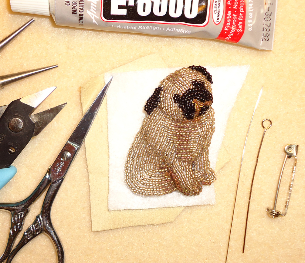 PDF en español: PUG patrón de bordado con cuentas de prendedor de perro + Tutorial de Introducción a Básico Bordados con Cuentas