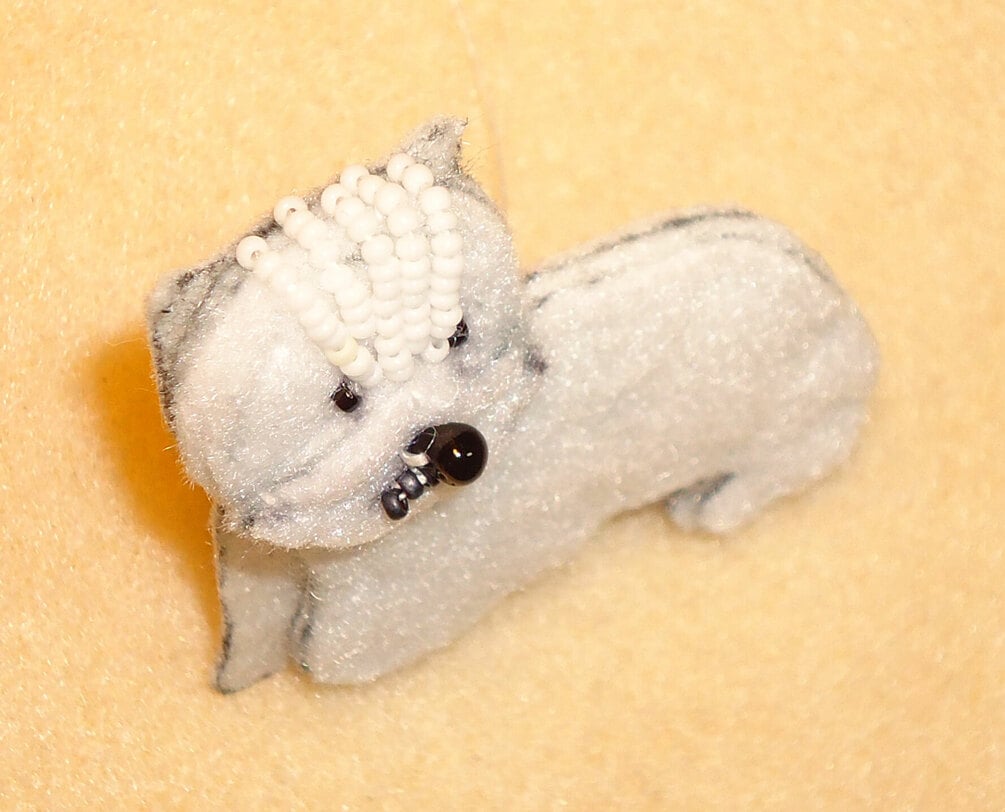 Necesita cuentas de cristal Japonesas de la talla 15/0 en diferentes colores, una cuenta negra para la nariz, un cristal de Swarovski, un cordón de cuero, fieltro, tela Ultrasuede, agujas para bordar, hilo encerado o Nymo, un broche o prendedor, pegamento, y mucha paciencia para llevar a cabo este proyecto :)