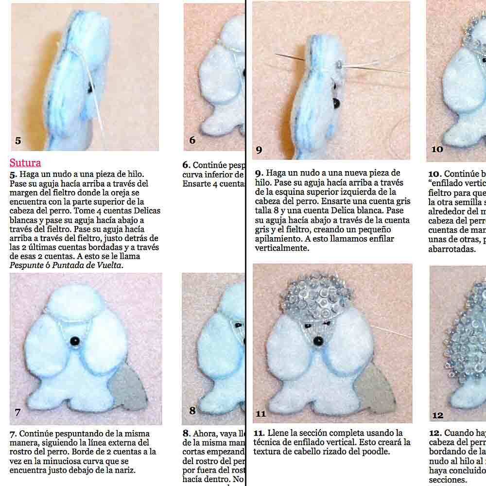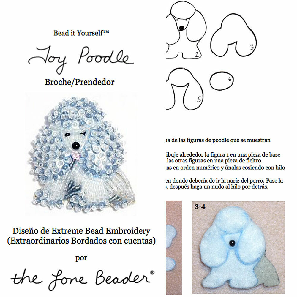 PDF en español: TOY POODLE patrón de bordado con cuentas de prendedor de perro + Tutorial de Introducción a Básico Bordados con Cuentas