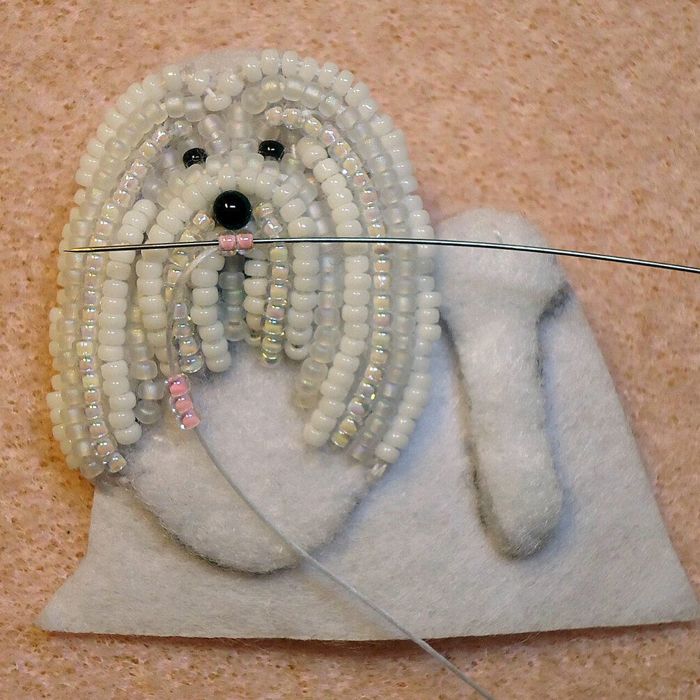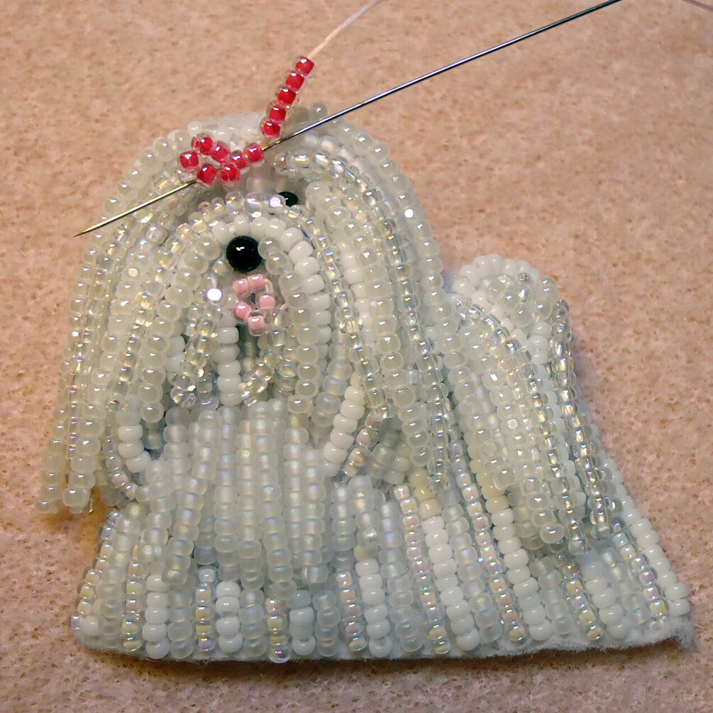 PDF en español: MALTÉS patrón de bordado con cuentas de prendedor de perro + Tutorial de Introducción a Básico Bordados con Cuentas